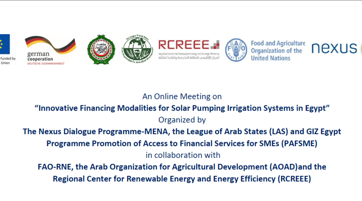 Le RCREEE co-organise une réunion en ligne sur «Les modalités de financement innovantes pour les systèmes d’irrigation par pompage solaire en Égypte»